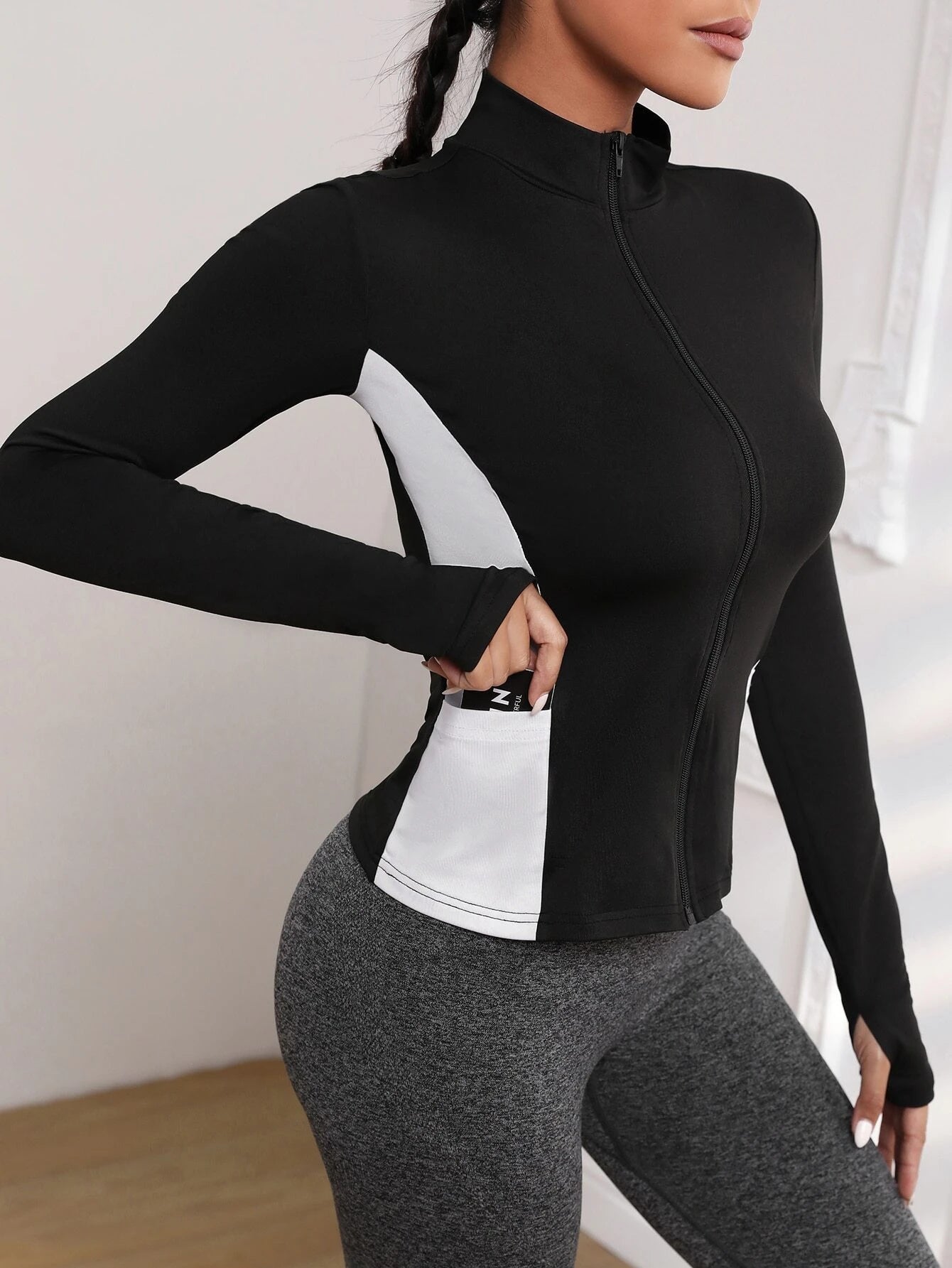 SHEIN Colorblock Zipper Placket Pocket Detail Sports Jacket