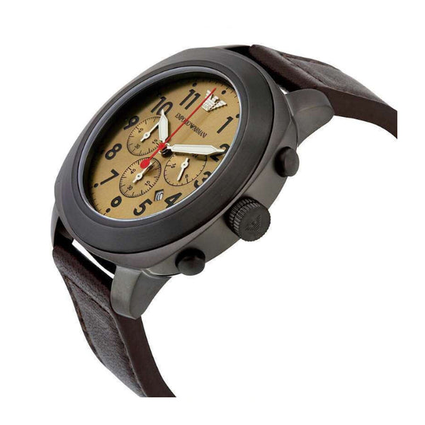 EMPORIO ARMANI Sportivo Brown Leather Gold Sunray Dial Quartz Watch for Men- EMPORIO ARMANI AR 6055