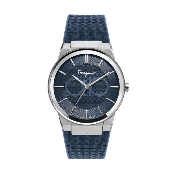 Ferragamo Contemporary Sapphire Blue Rubber Strap Blue Dial Quartz Watch For Men - Sfhp00120