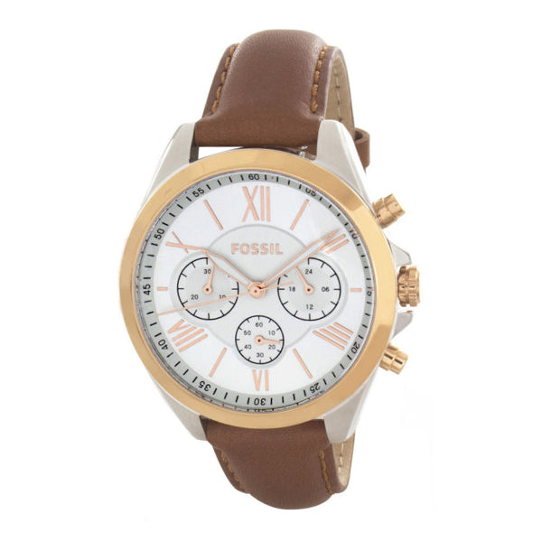 Fossil Brown Leather Strap White Dial Chronograph Quartz Watch for Women - BQ3033