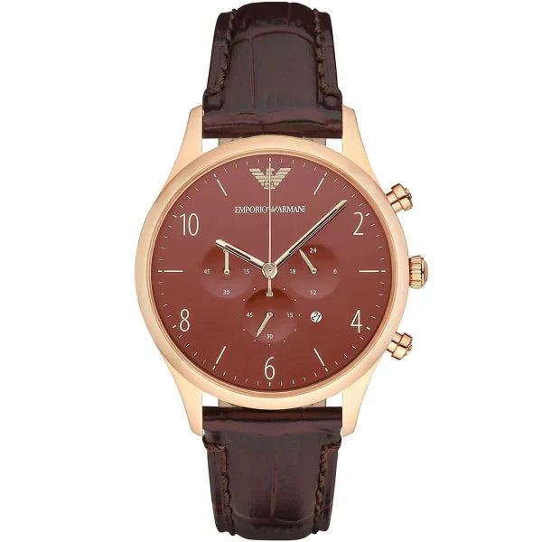 Emporio Armani Classic Brown Leather Strap Red Dial Chronograph Quartz Watch for Men - AR1890