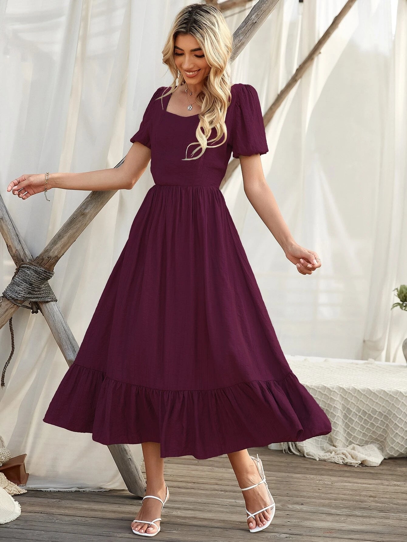 SHEIN Ruffle Hem Puff Sleeve Dress