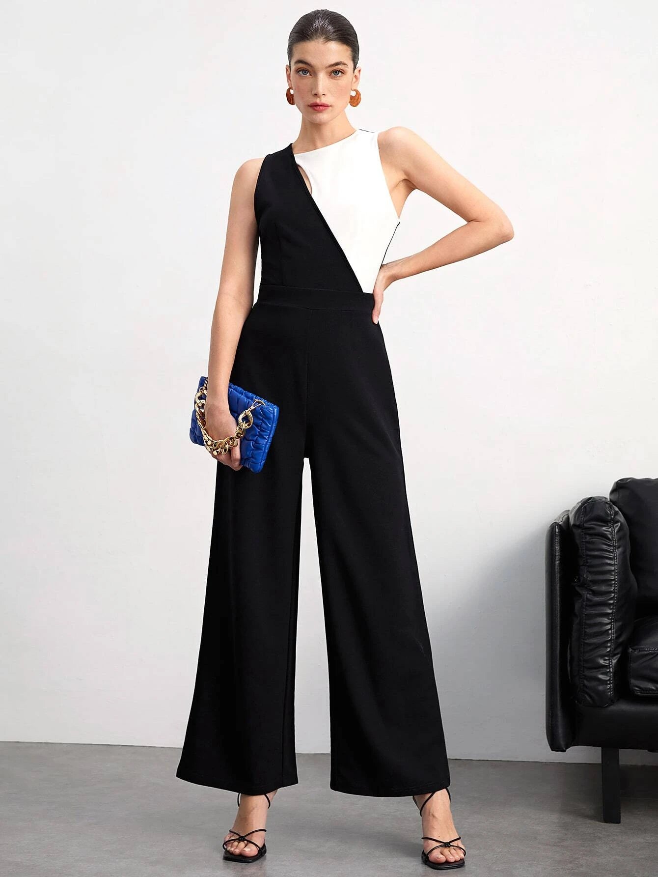 SHEIN BIZwear Two Tone Wide Leg Jumpsuit Without Belt