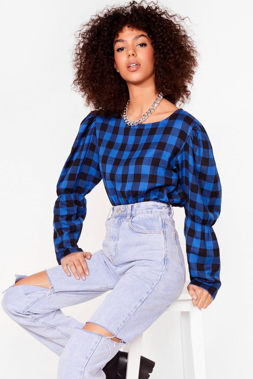 Nasty Gal Check the Party Gingham Puff Sleeve Blouse