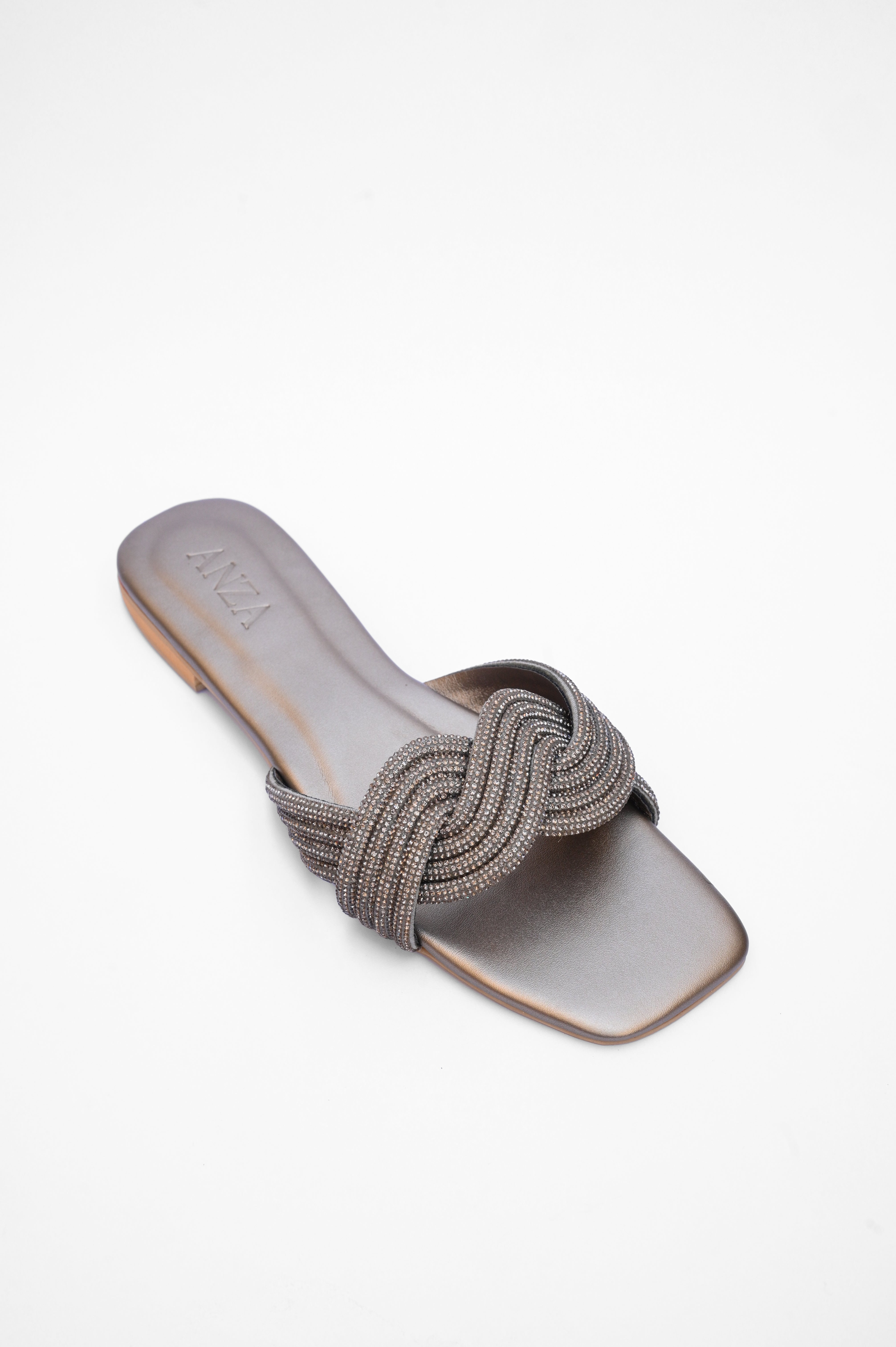 Aurora is a masterpiece of artistry and elegance. The braided embellishments, intricately adorned with shimmering stones, wrap gracefully across the foot, offering a perfect blend of sophistication and style. Designed with a cushioned insole and a sleek square toe, Aurora's silhouette redefines luxury, making it a must-have for women who embrace glamour with ease.