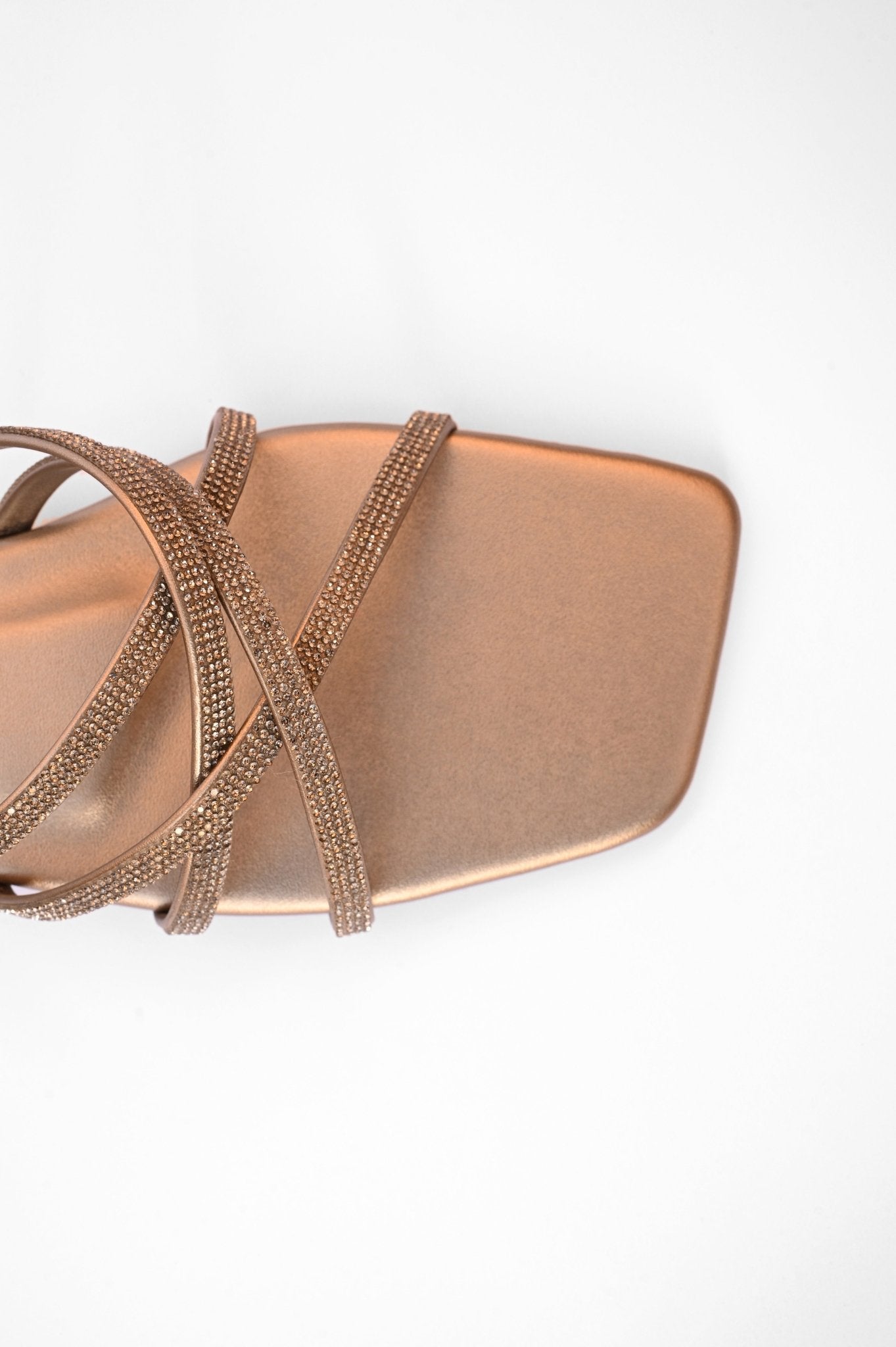 Introducing Mirage, a sandal that embodies sophistication and allure, designed to captivate from every angle. With delicate, crisscrossing straps adorned in shimmering detail, this piece exudes a refined elegance that’s both understated and impactful. The Mirage is crafted with a slender yet sturdy design, providing a graceful silhouette that enhances any outfit. Its gentle square toe adds a touch of modernity, while the barely-there straps offer a refined, airy feel. Perfect for evenings when you want to make a quiet yet unforgettable impression, Mirage is an ideal blend of comfort and style that transforms the everyday into something extraordinary