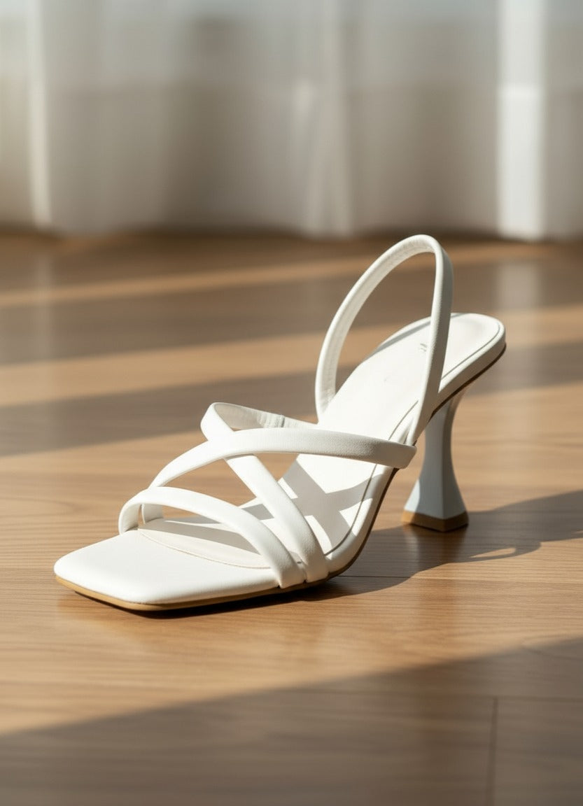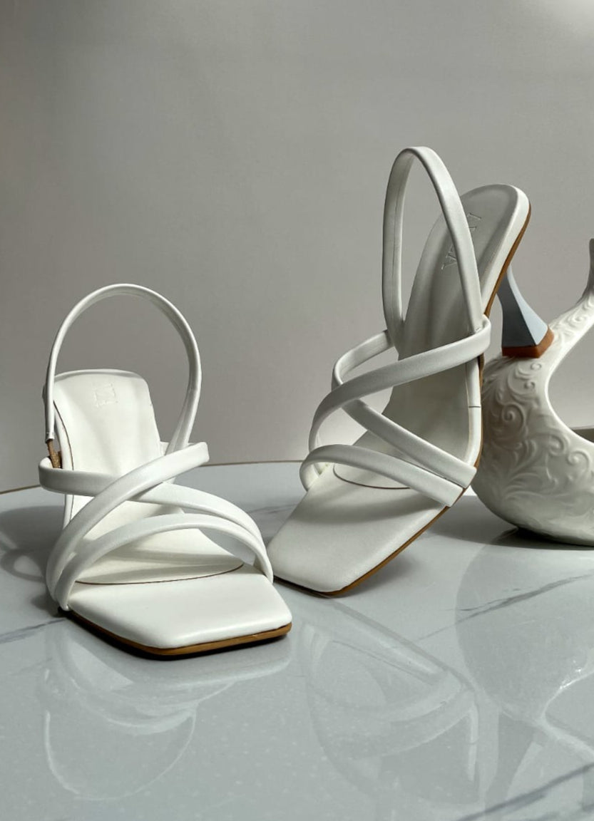 An elevated statement heel with sculptural curves, Verve features bold triple straps and a flattering slingback that defines modern minimalism. Clean, serene, and effortlessly polished — Porcelain White transforms the Verve heel into an understated icon. The soft matte texture and airy tone balance the bold shape of the design, making it ideal for both daytime elegance and minimalist evening looks.