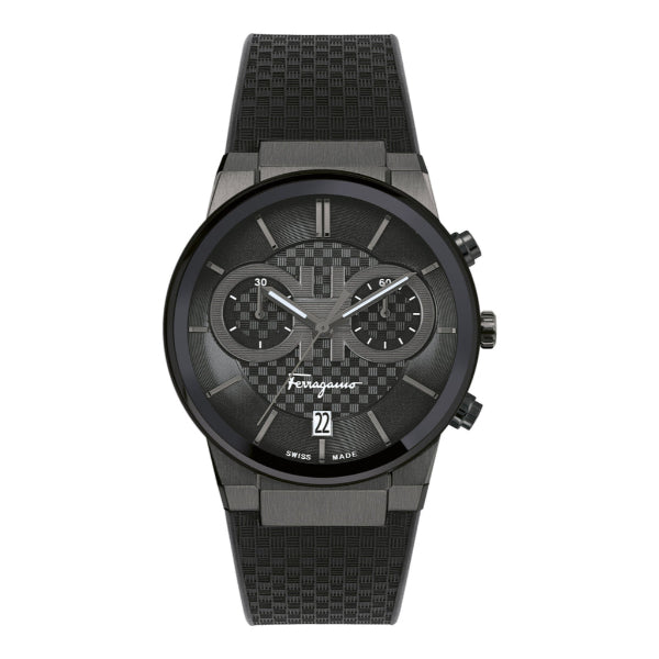 Ferragamo Sapphire Black Rubber Strap Black Dial Chronograph Quartz Watch For Men - Sfme00621