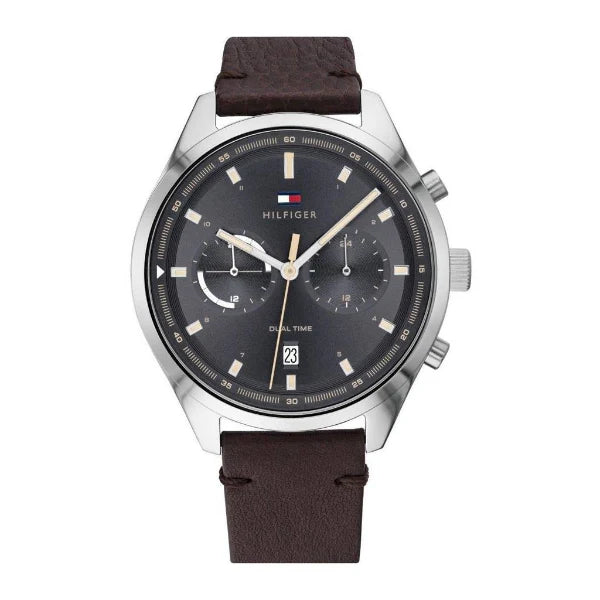 Tommy Hilfiger Bennett Brown Leather Strap Black Dial Chronograph Quartz Watch for Men - 1791729