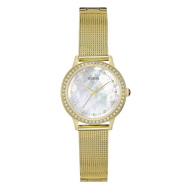 Guess Chelsea Gold Mesh Bracelet Mother of pearl Dial Quartz Watch for Ladies - W0647L3