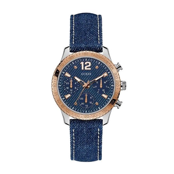 Guess Sport Marina Blue Denim Strap Blue Dial Chronograph Quartz Watch for Ladies - W1057L1