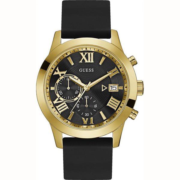 Guess Atlas Black Silicone Strap Black Dial Chronograph Quartz Watch for Gents - W1055G4