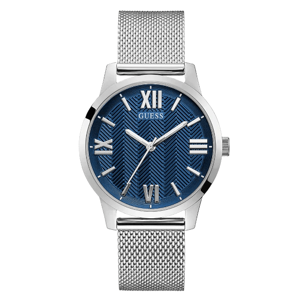 Guess Campbell Silver Mesh Bracelet Blue Dial Quartz Watch for Gents - GW0214G1