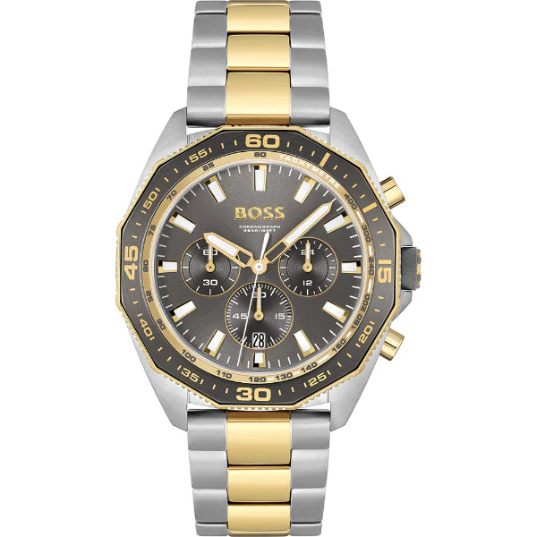 HUGO BOSS Energy Twotone Stainless Steel Grey Dial Chronograph Quartz Men Watch 1513974 - 100% Authentic with Official Warranty & Free Shipping Across Pakistan.
