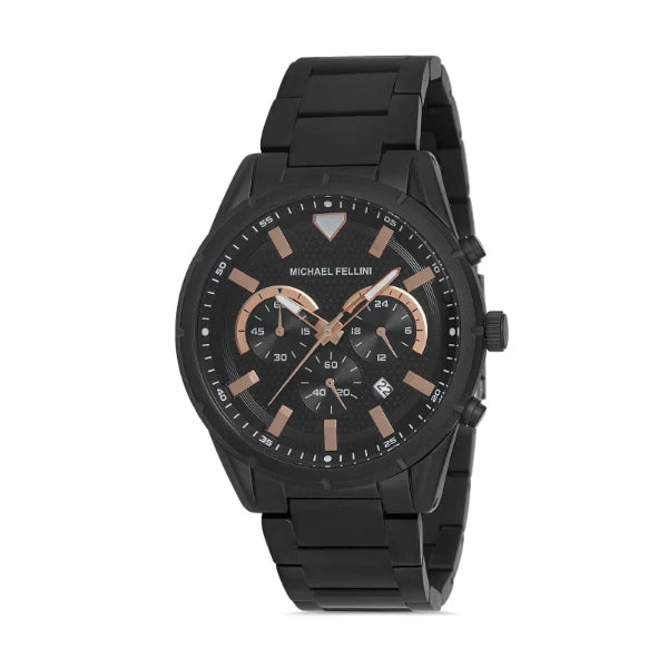 Michael Fellini Black Stainless Steel Black Dial Quartz Men Watch MF22425 - 100% Authentic with Official Warranty & Free Shipping Across Pakistan.