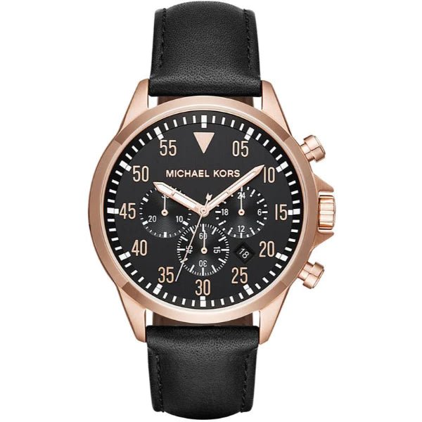 Michael Kors Gage Black Leather Strap Black Dial Chronograph Quartz Watch for Gents - MK8535