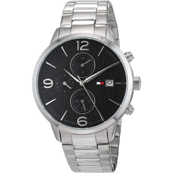 Tommy Hilfiger Liam Silver Stainless Steel Black Dial Chronograph Quartz Men Watch 1710356 - 100% Authentic with Official Warranty & Free Shipping Across Pakistan.