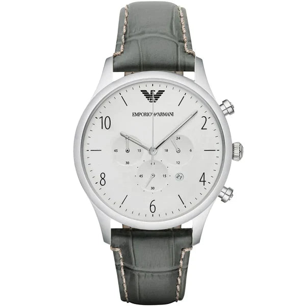 Emporio Armani Classic Black Leather Strap Silver Dial Chronograph Quartz Watch for Men - AR1861