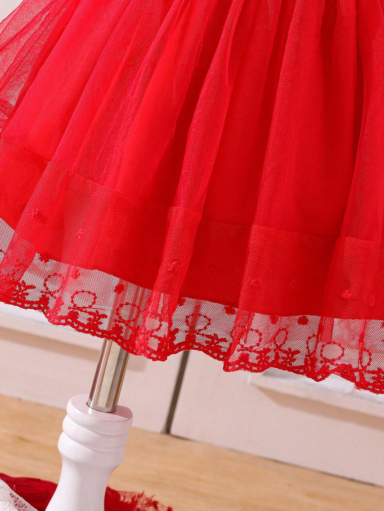 SHEIN Baby Cold Shoulder Mesh Overlay Party Dress