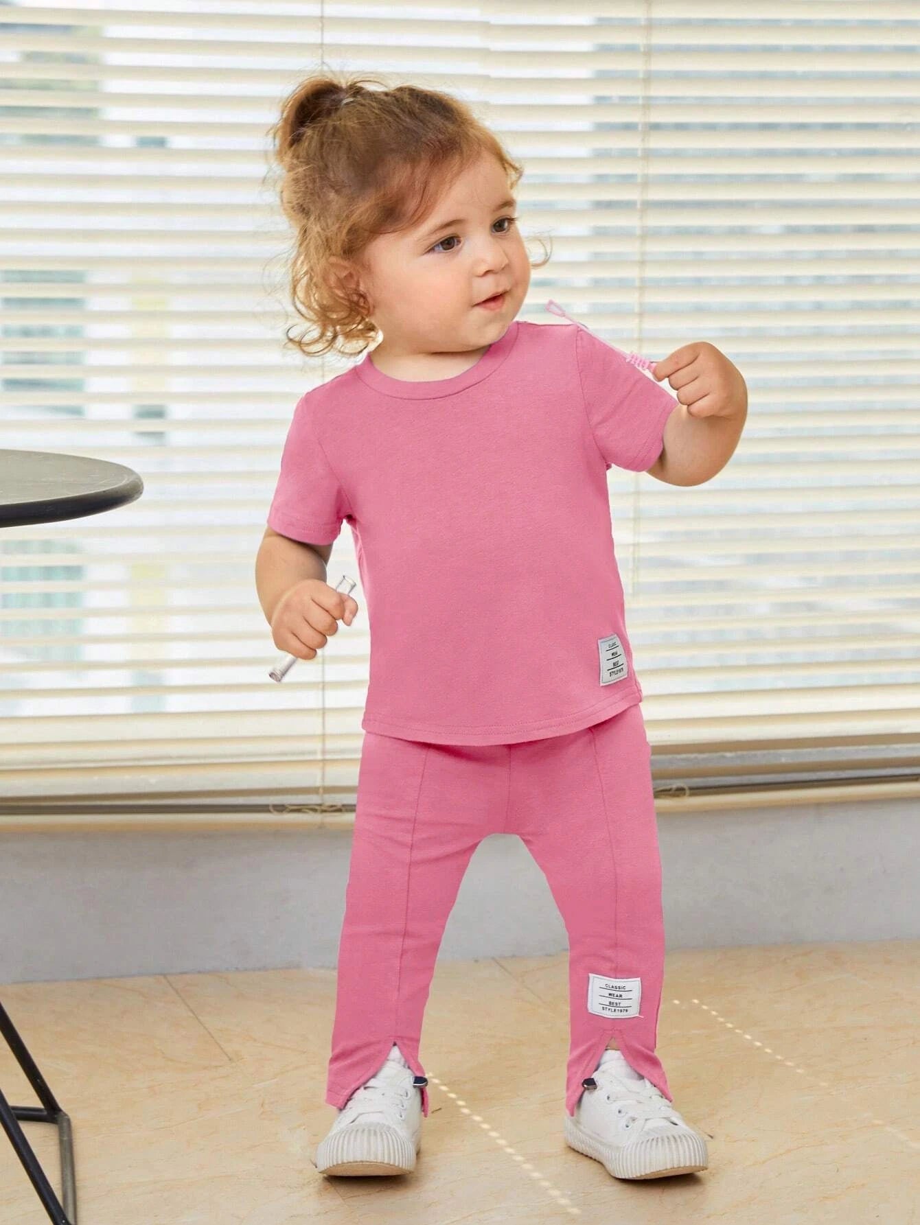 SHEIN Baby Letter Patched Detail Tee & Split Hem Pants
