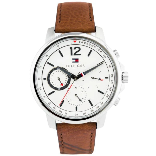 Tommy Hilfiger Landon Brown Leather Strap White Dial Chronograph Quartz Watch for Men - 1791531