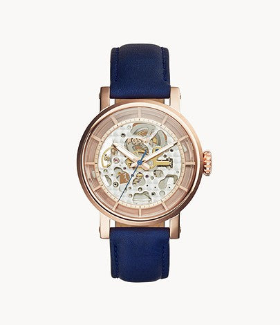Fossil Original Boyfriend Blue Leather Strap Skeleton Dial Automatic Watch for Women - ME3086