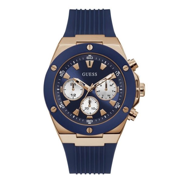 Guess Blue Silicone Strap Blue Dial Chronograph Quartz Watch for Gents - W0057G2