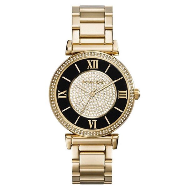 Michael Kors Catlin Gold Stainless Steel Black Dial Quartz Watch for Ladies - MK-3338