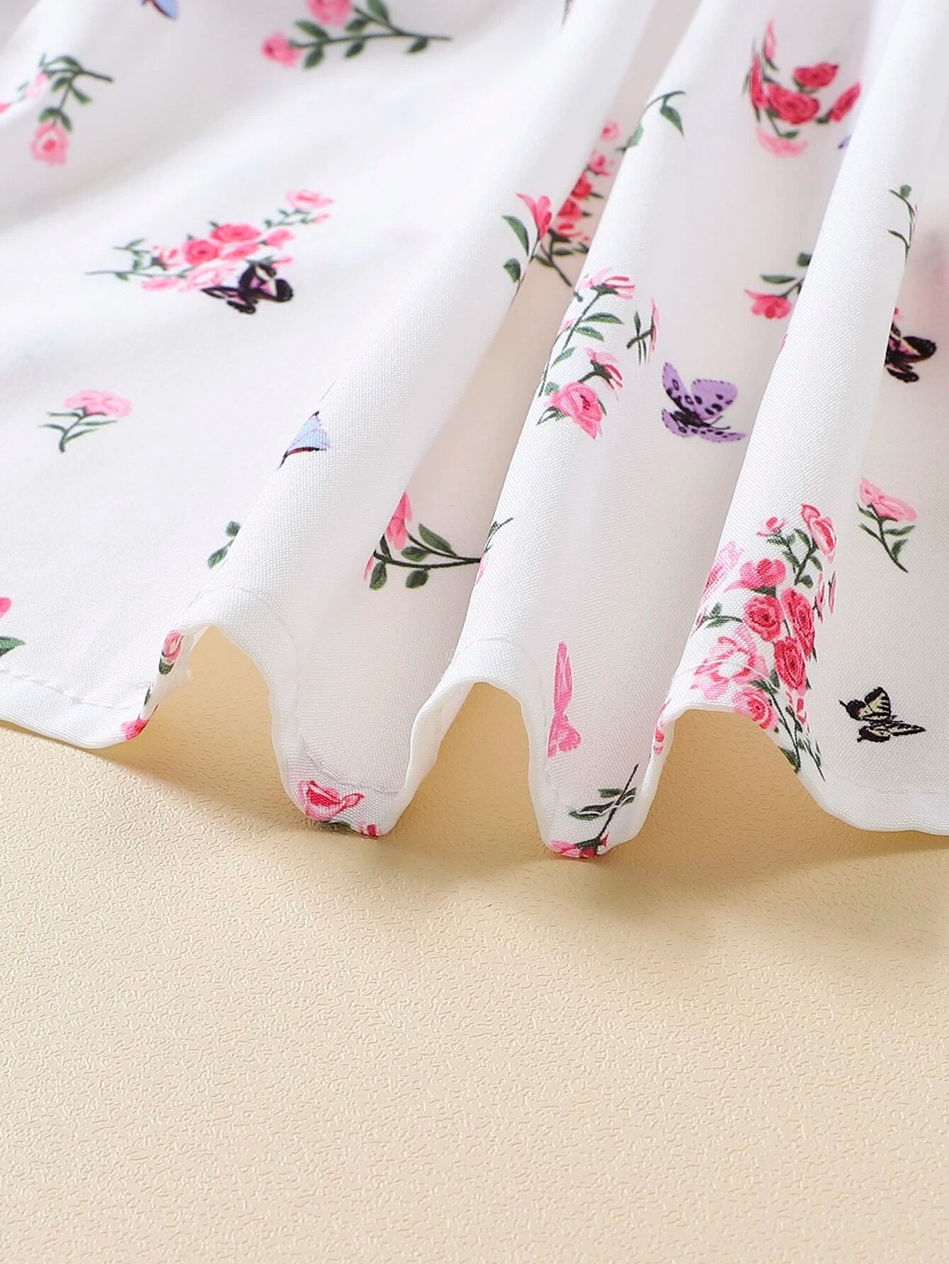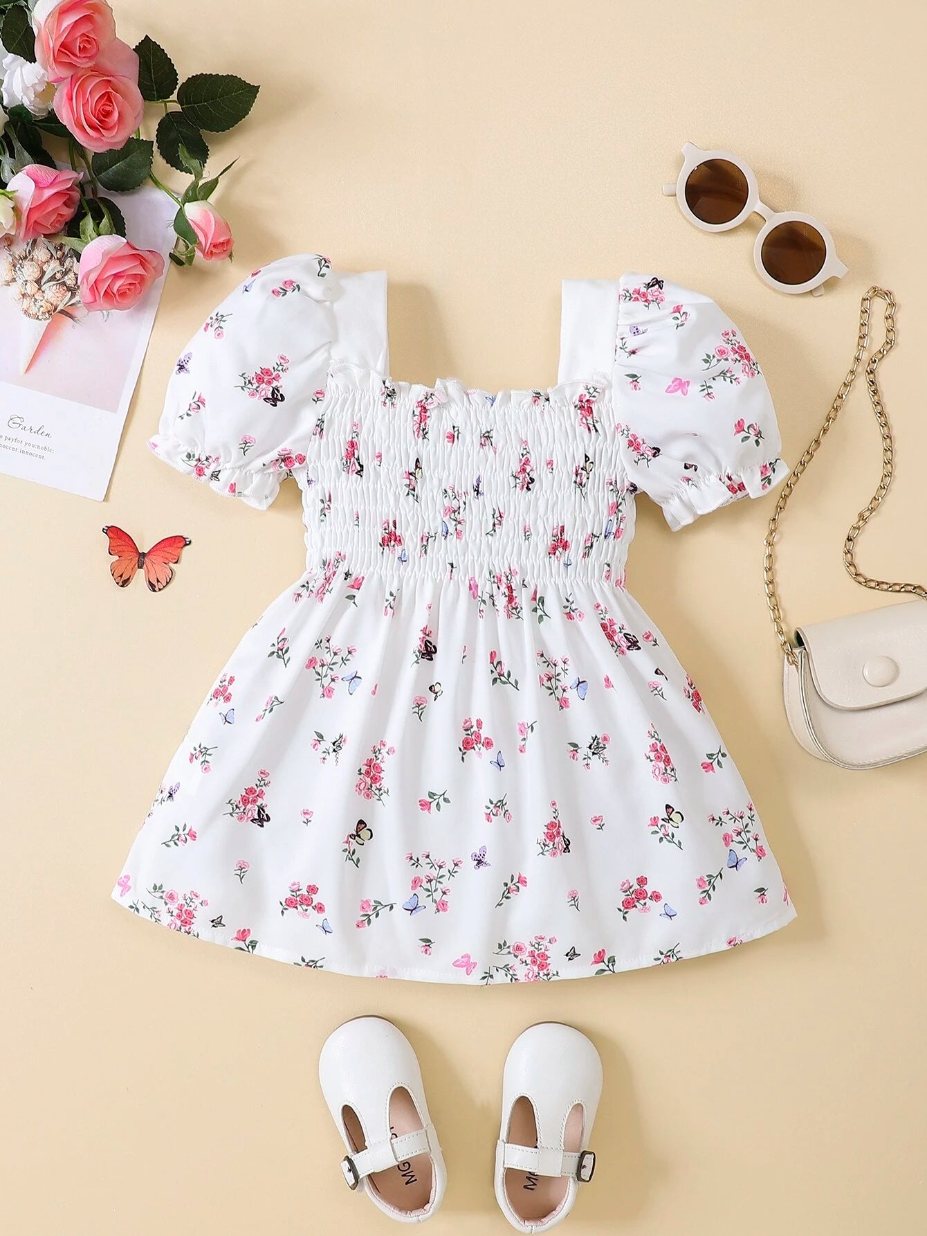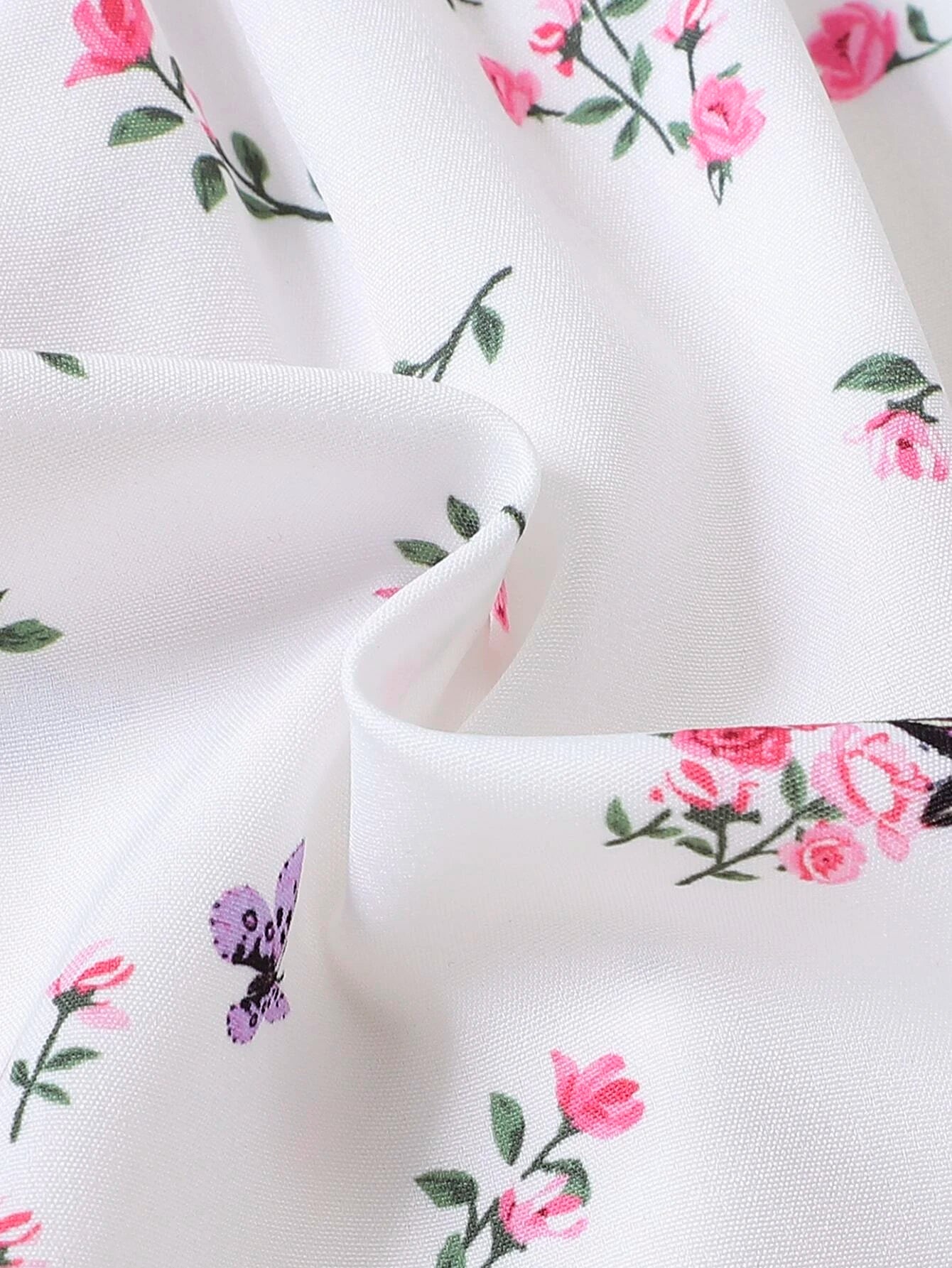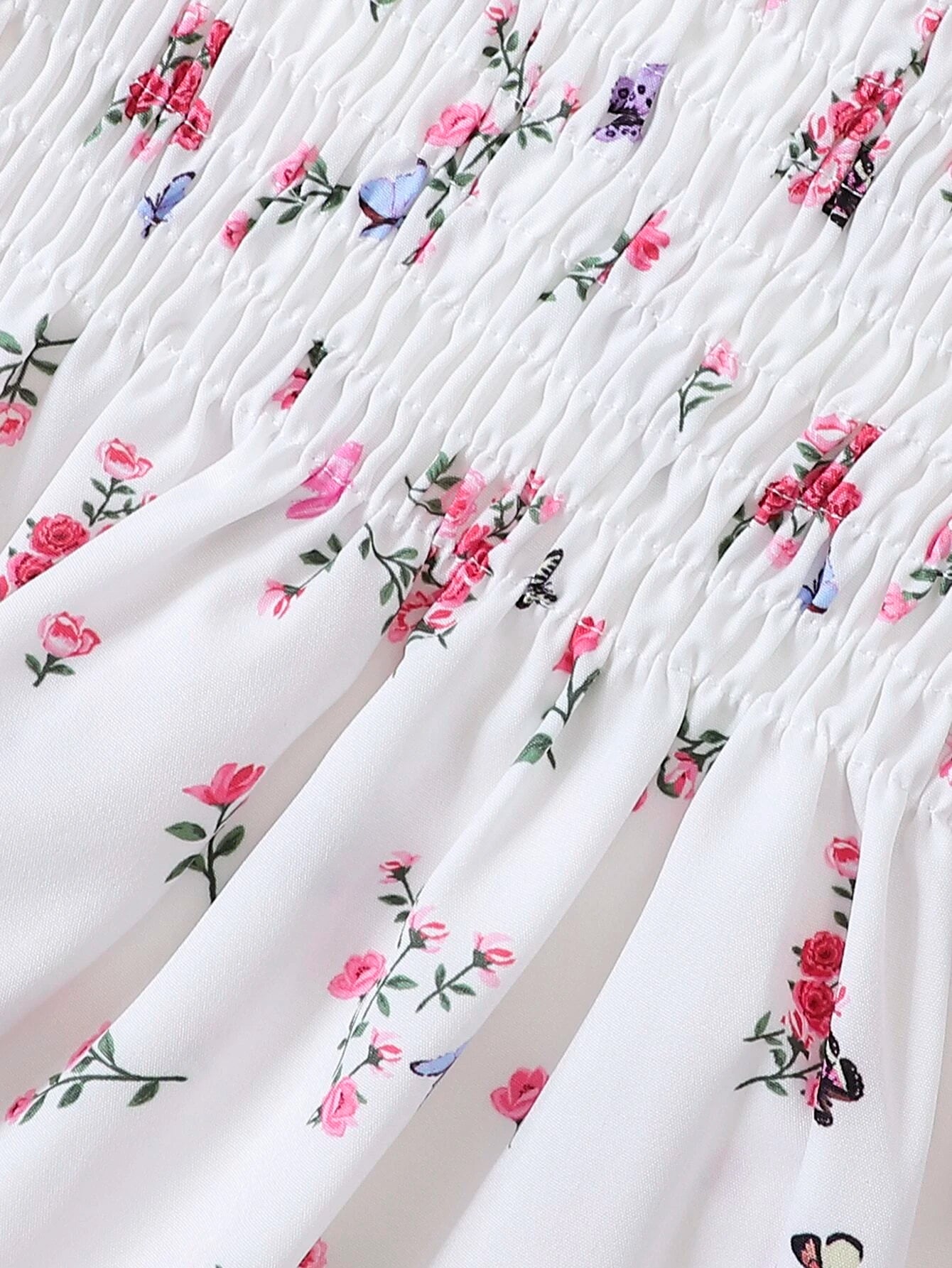 SHEIN Baby Floral Print Puff Sleeve Shirred Dress