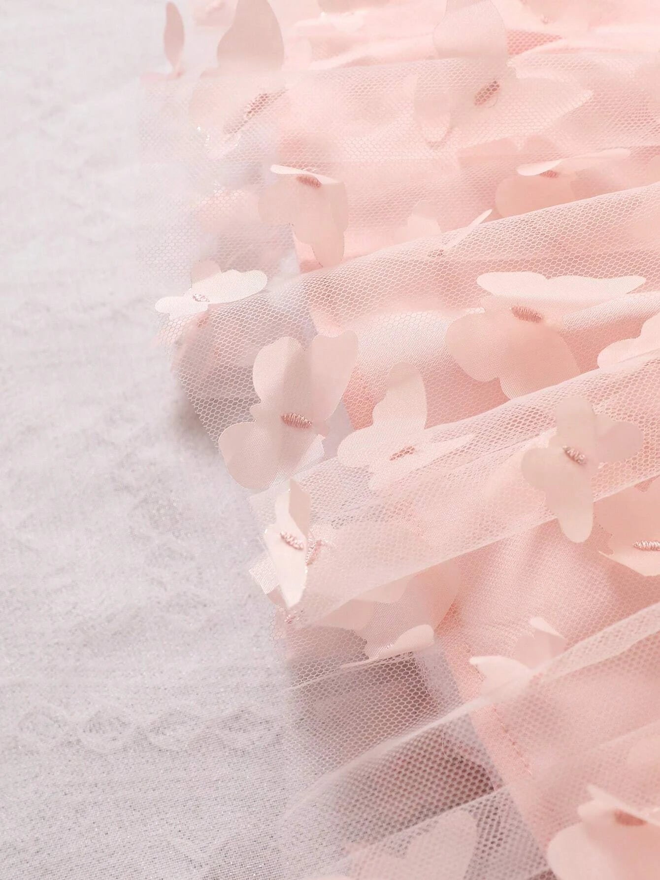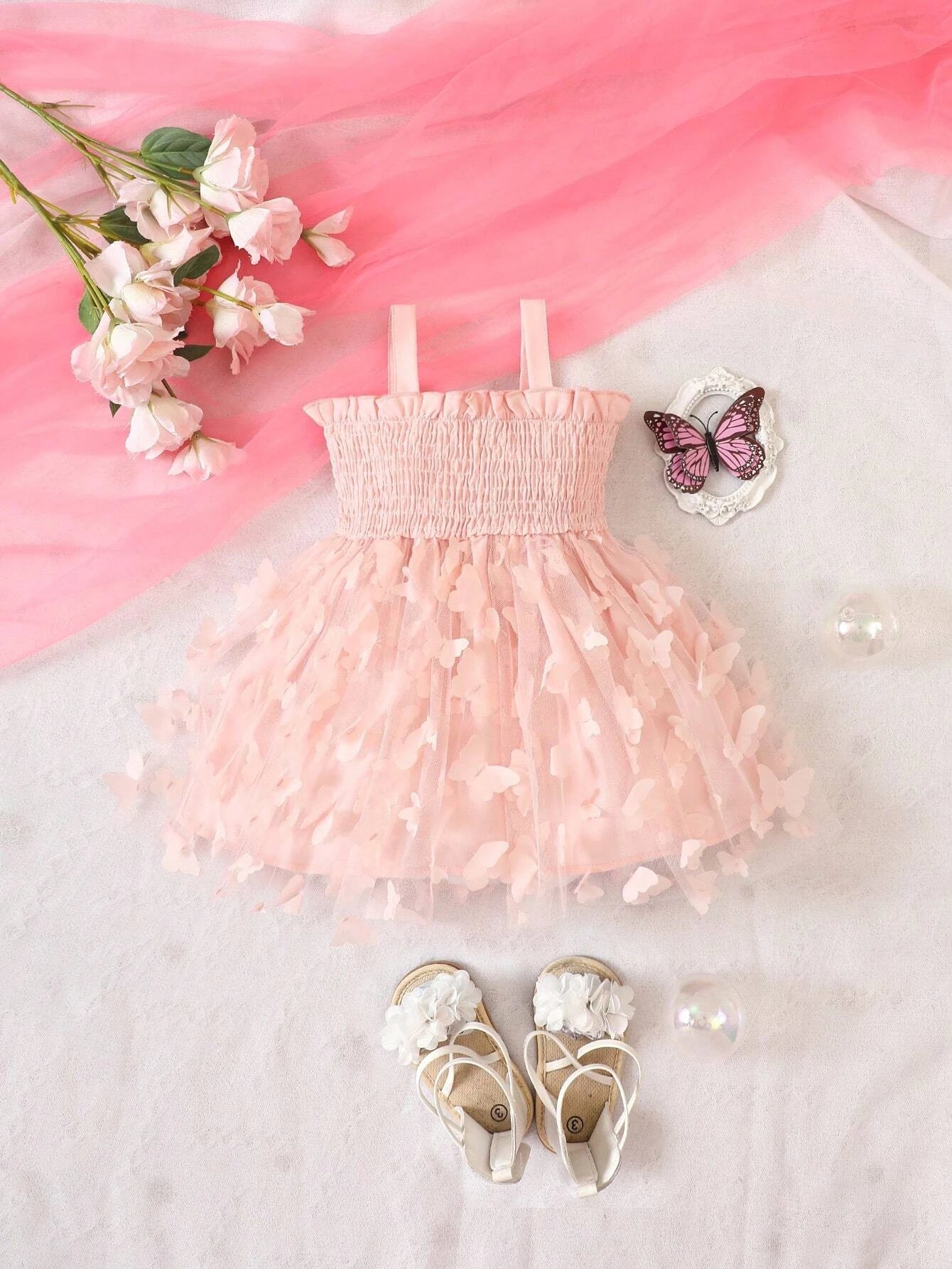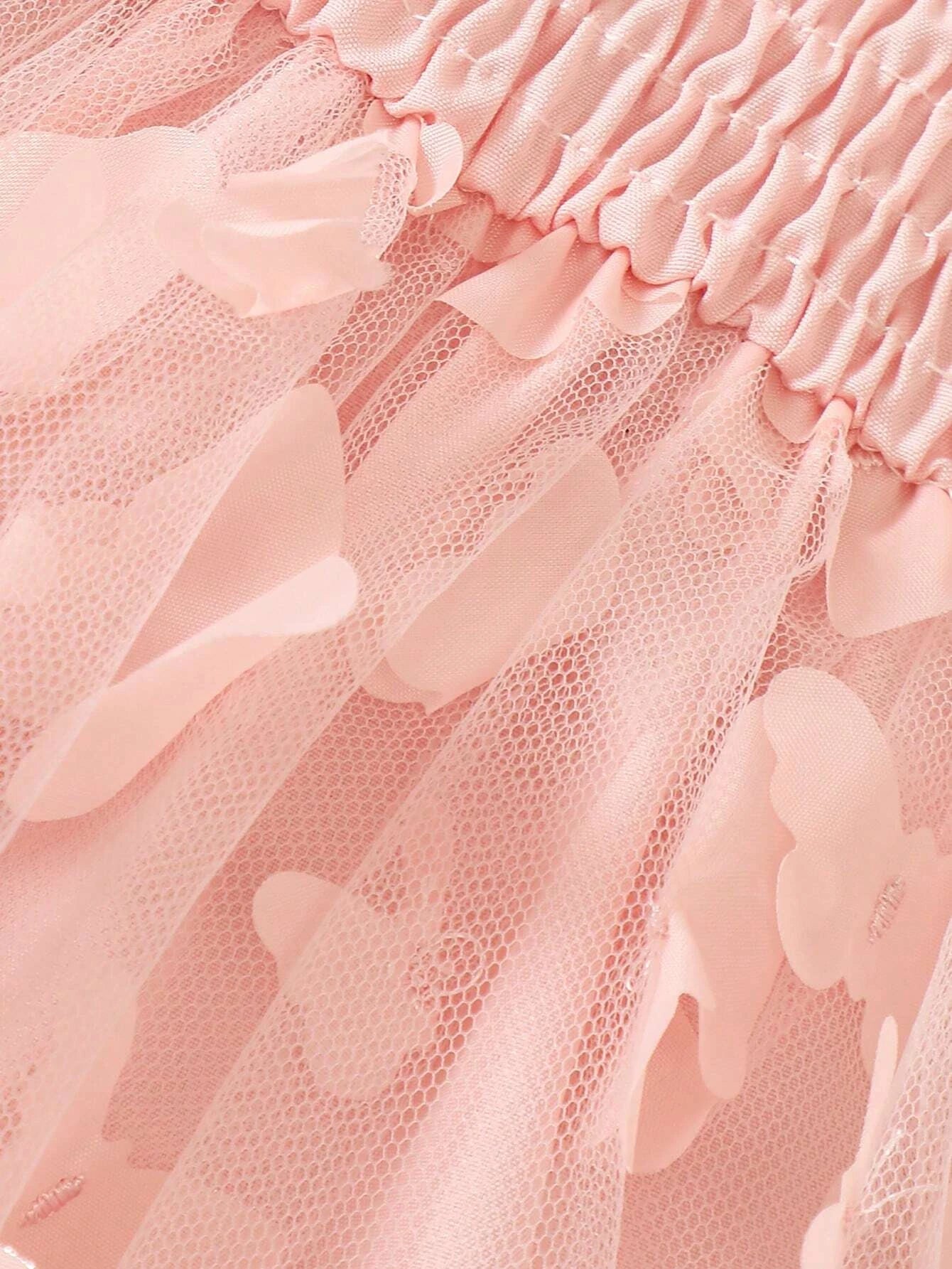 SHEIN Baby Solid Appliques Mesh Overlay Cami Dress