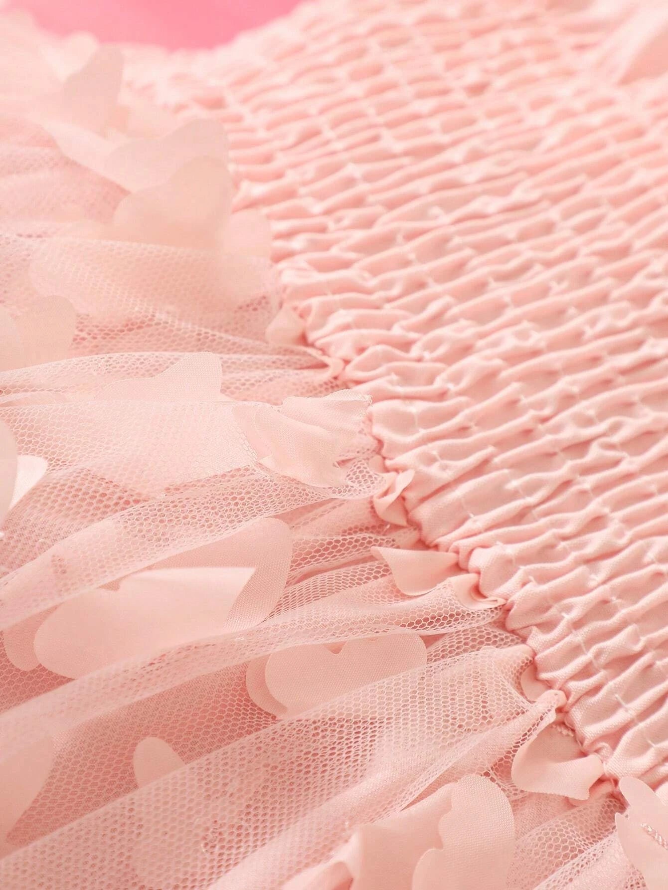 Details: Appliques, Contrast Mesh, Frill, Shirred