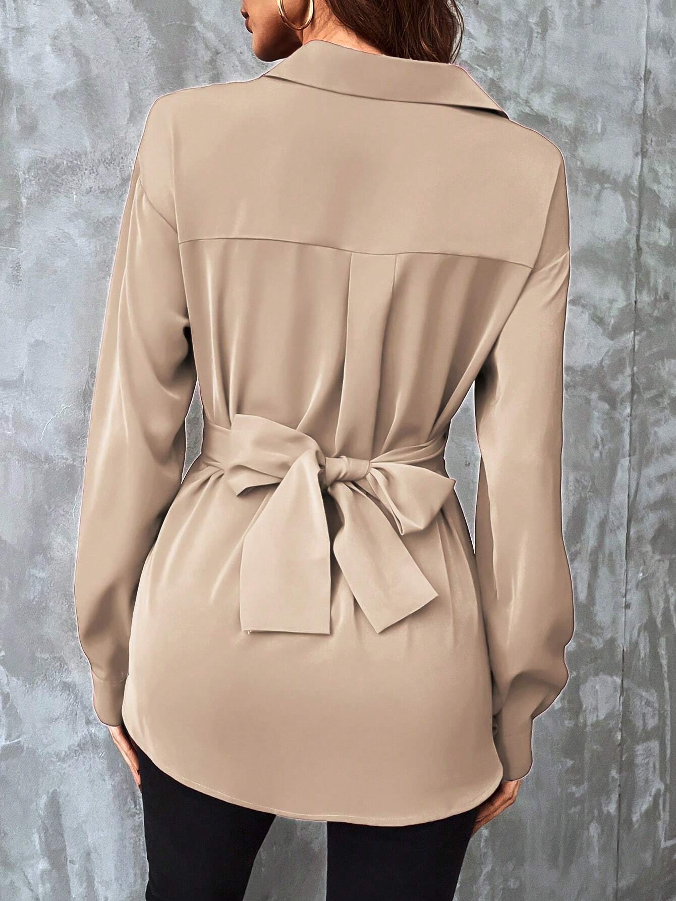 SHEIN Clasi Solid Wrap Cross Tie Back Blouse