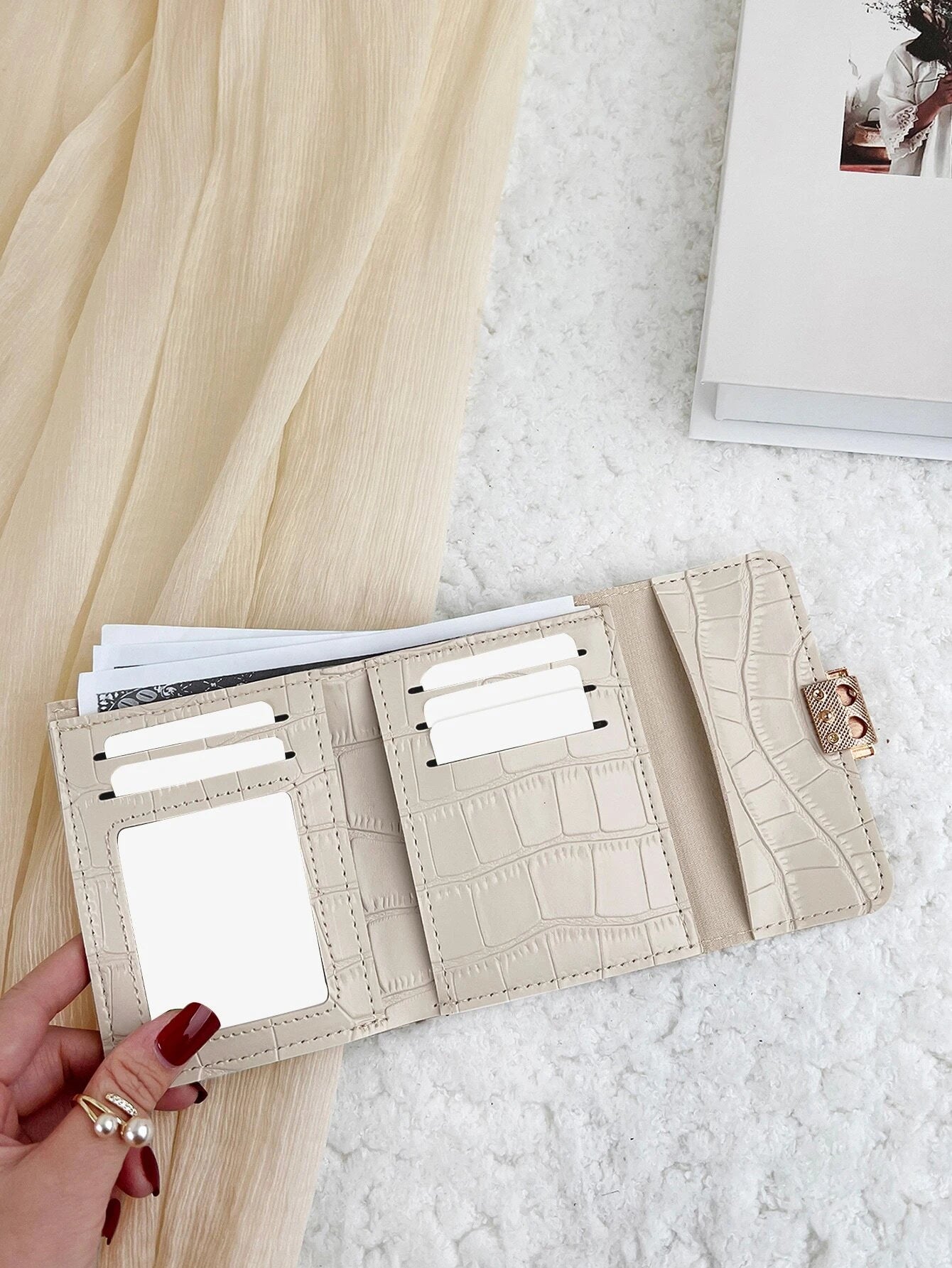 SHEIN Crocodile Embossed Flap Small Wallet Coin Pocket Small Purse Bifold Slim Women Wallet