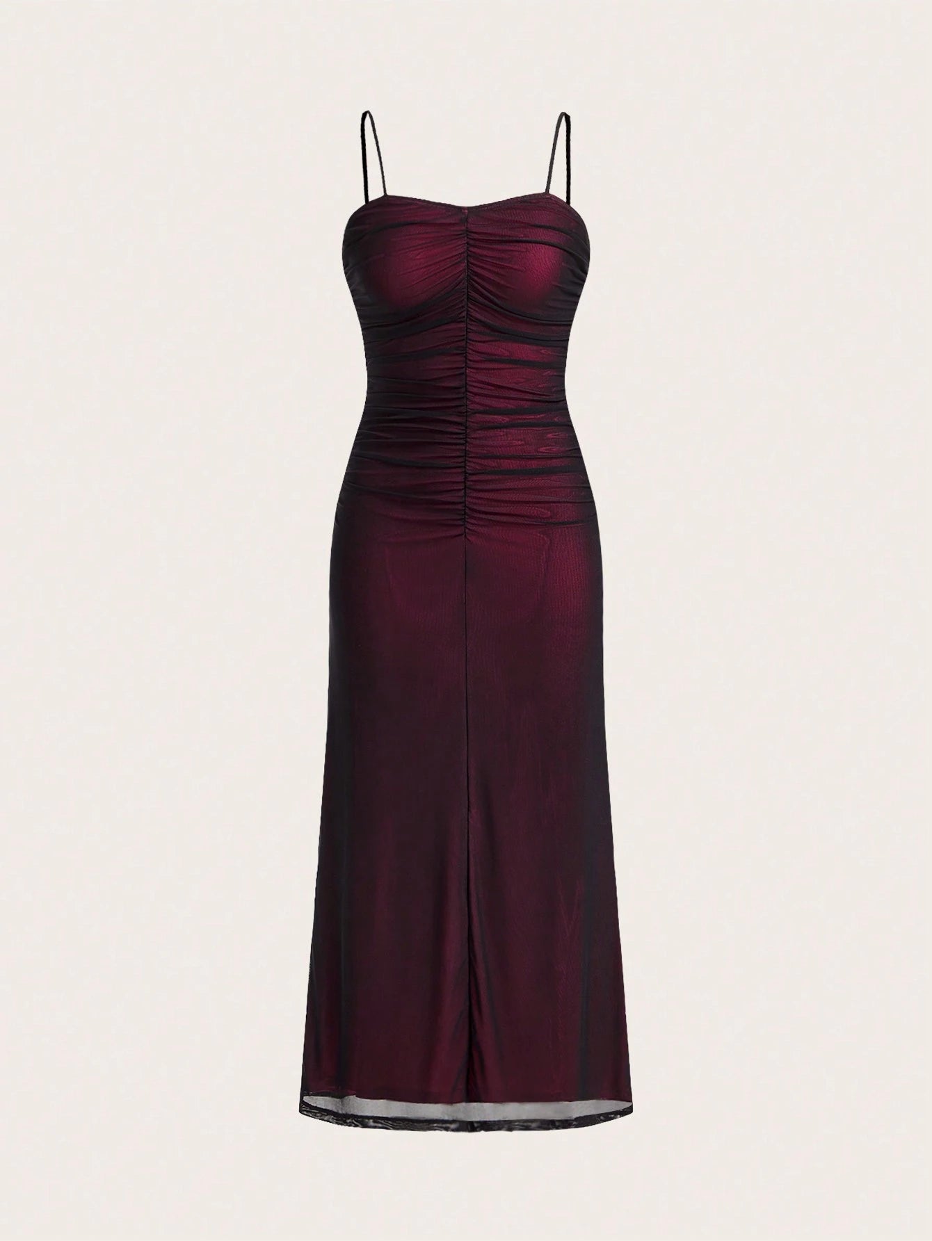 Details: Backless, Ruched, Sheer