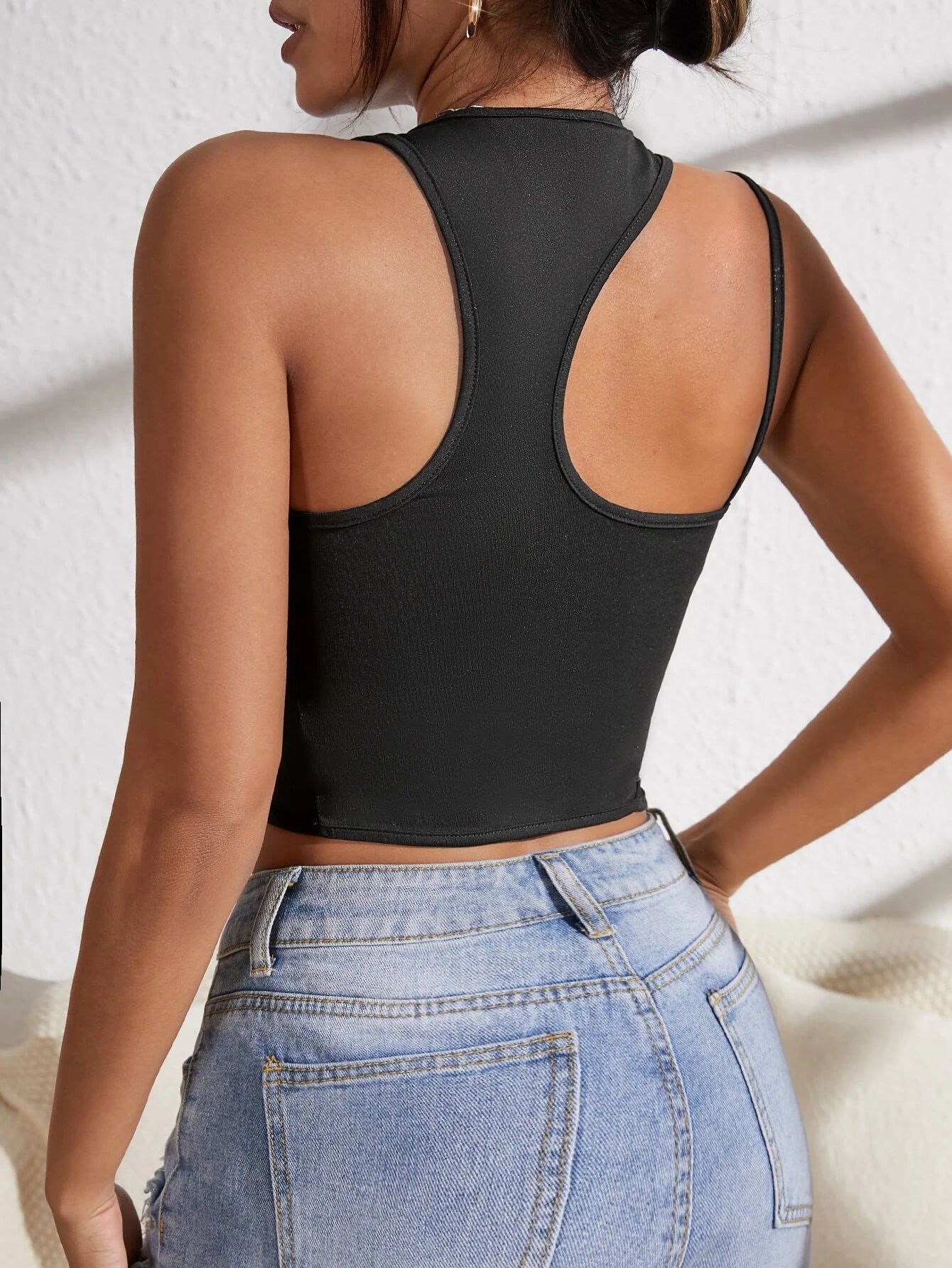 SHEIN Asymmetrical Neck Patch Detail Racerback Crop Top