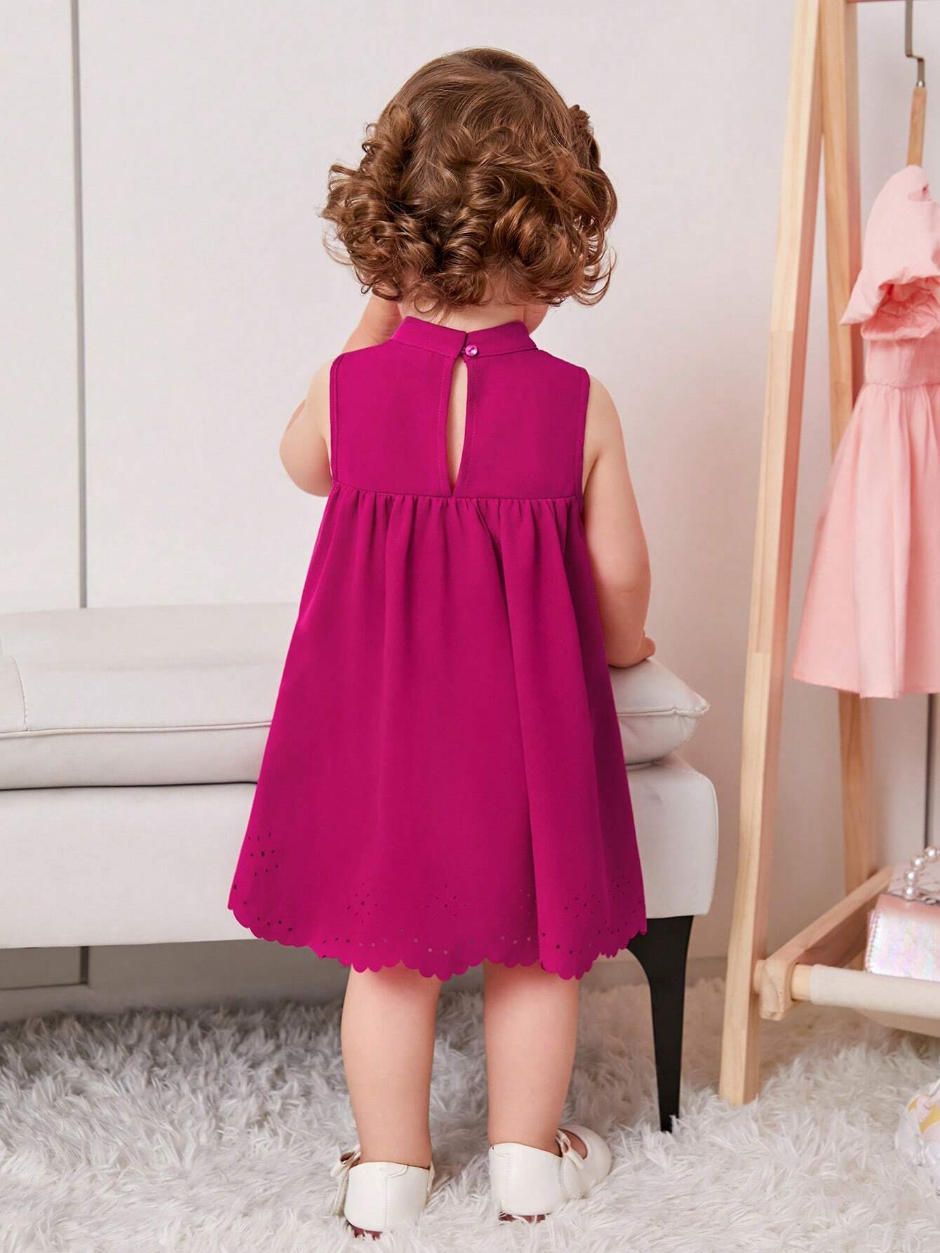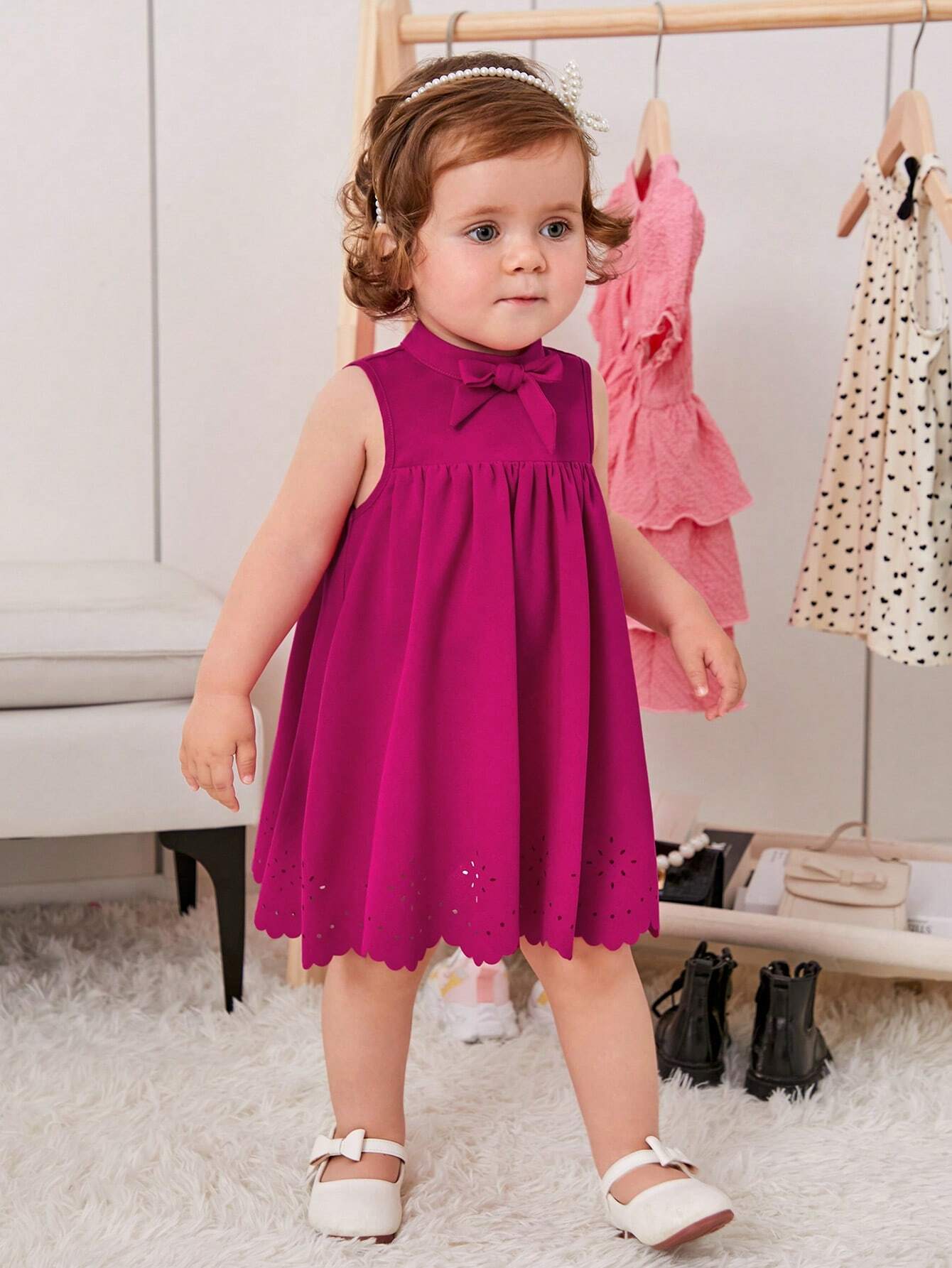 SHEIN Baby Bow Front Laser Cut Out Scallop Trim Dress