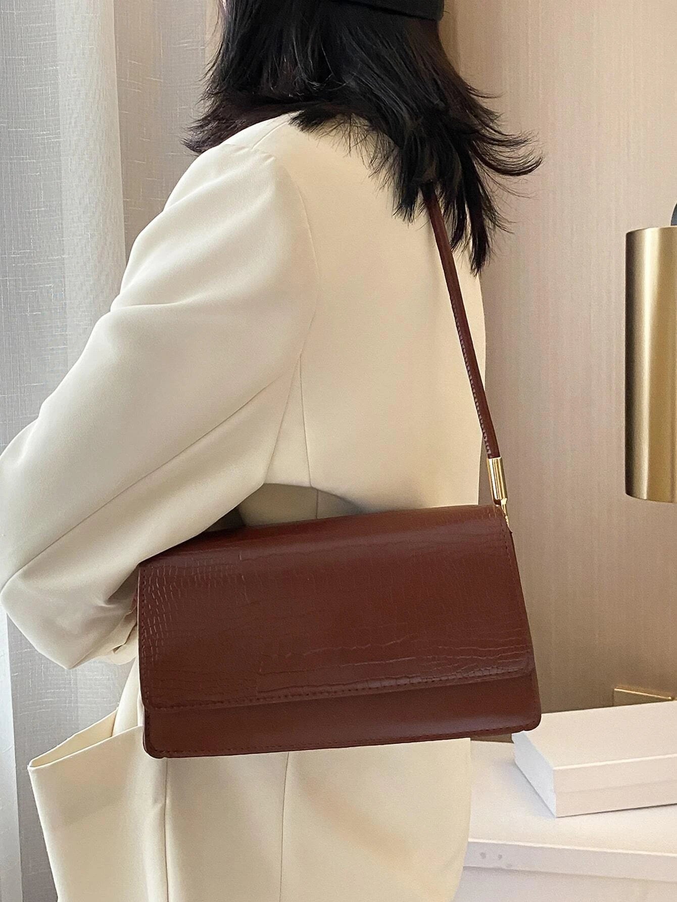 SHEIN Croc Embossed Flap Baguette Bag