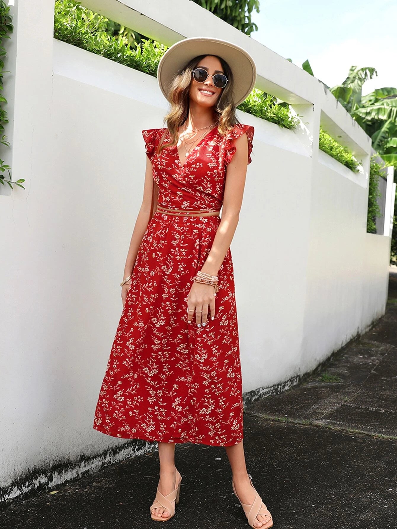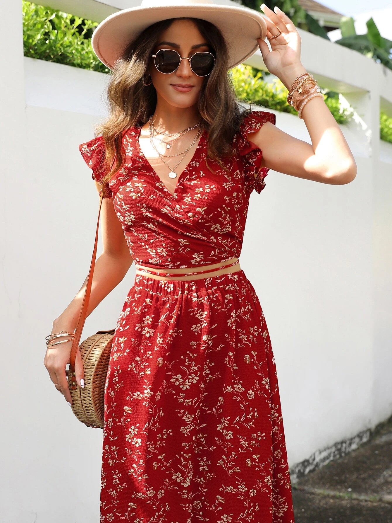 SHEIN EMERY ROSE Floral Print Wrap Tie Back Top & Skirt