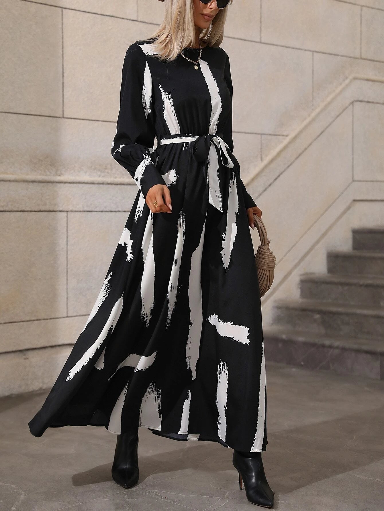 SHEIN Graphic Print Belted Maxi Dress
