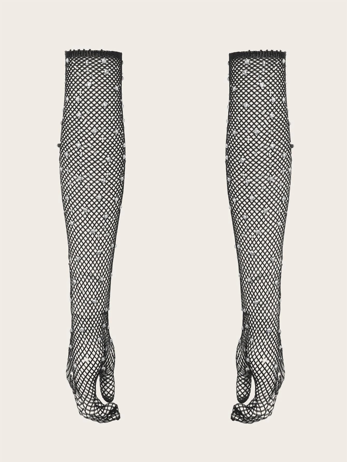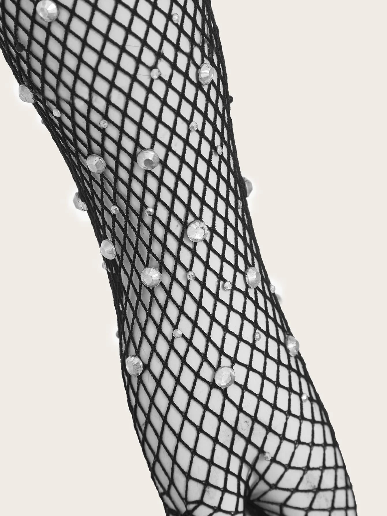 SHEIN ROMWE Rhinestone Decor Long Fishnet Gloves