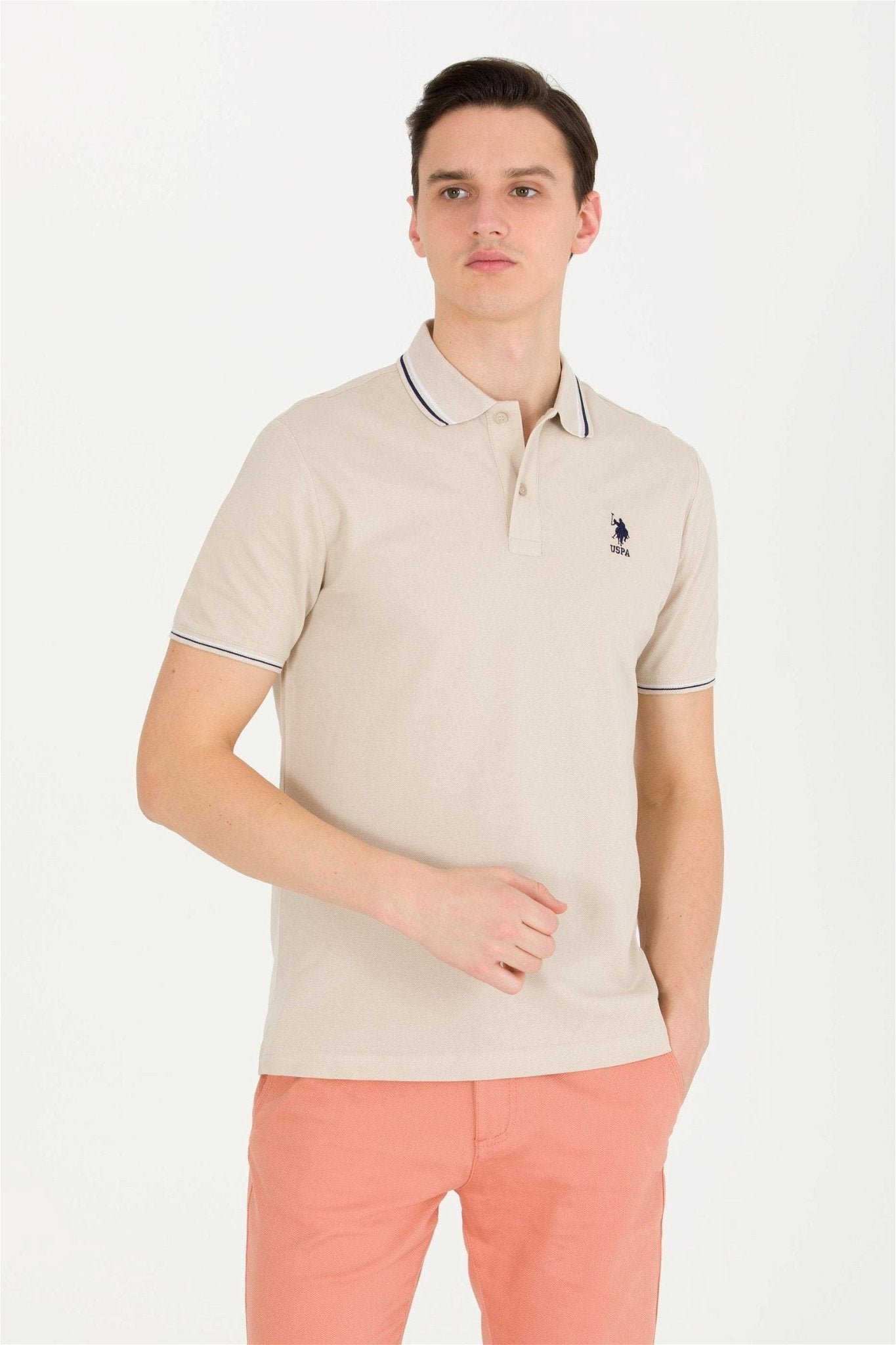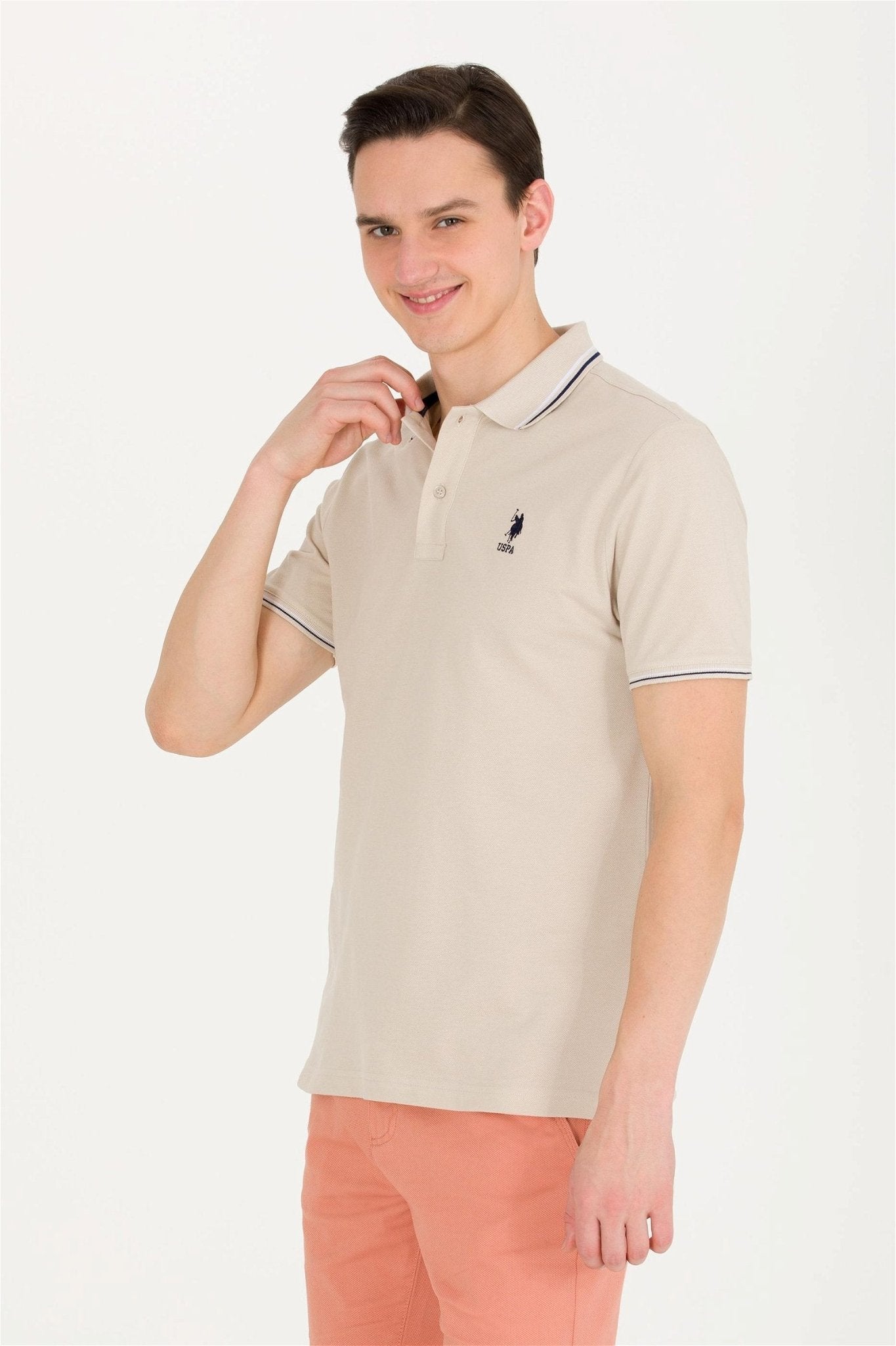 USPA Men's Stone Basic Polo Neck T-Shirt